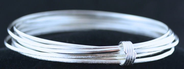 Brushed silver bangles, bundled together by a silver band. Classic. Simple. Elegant.
